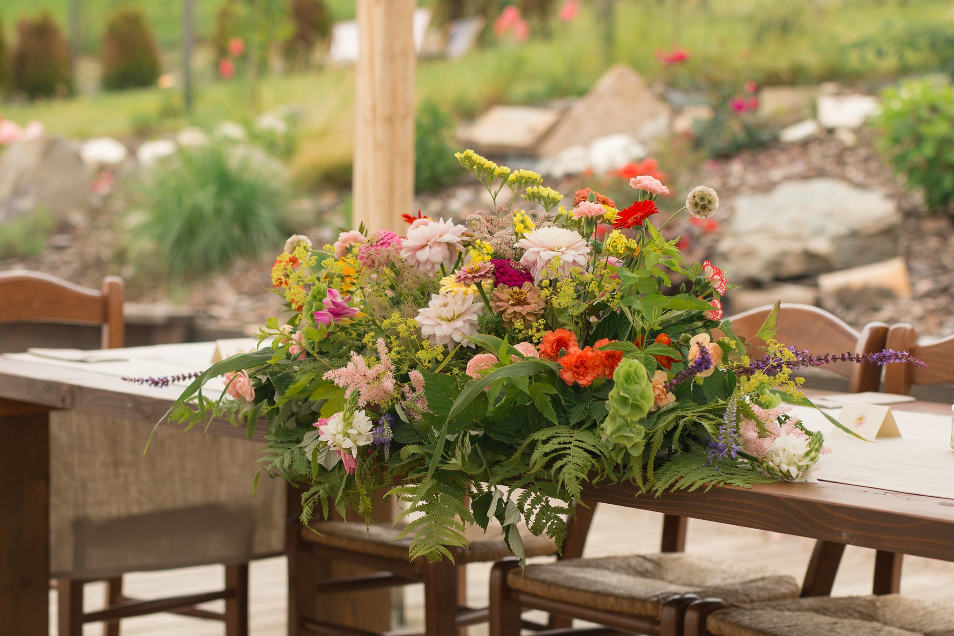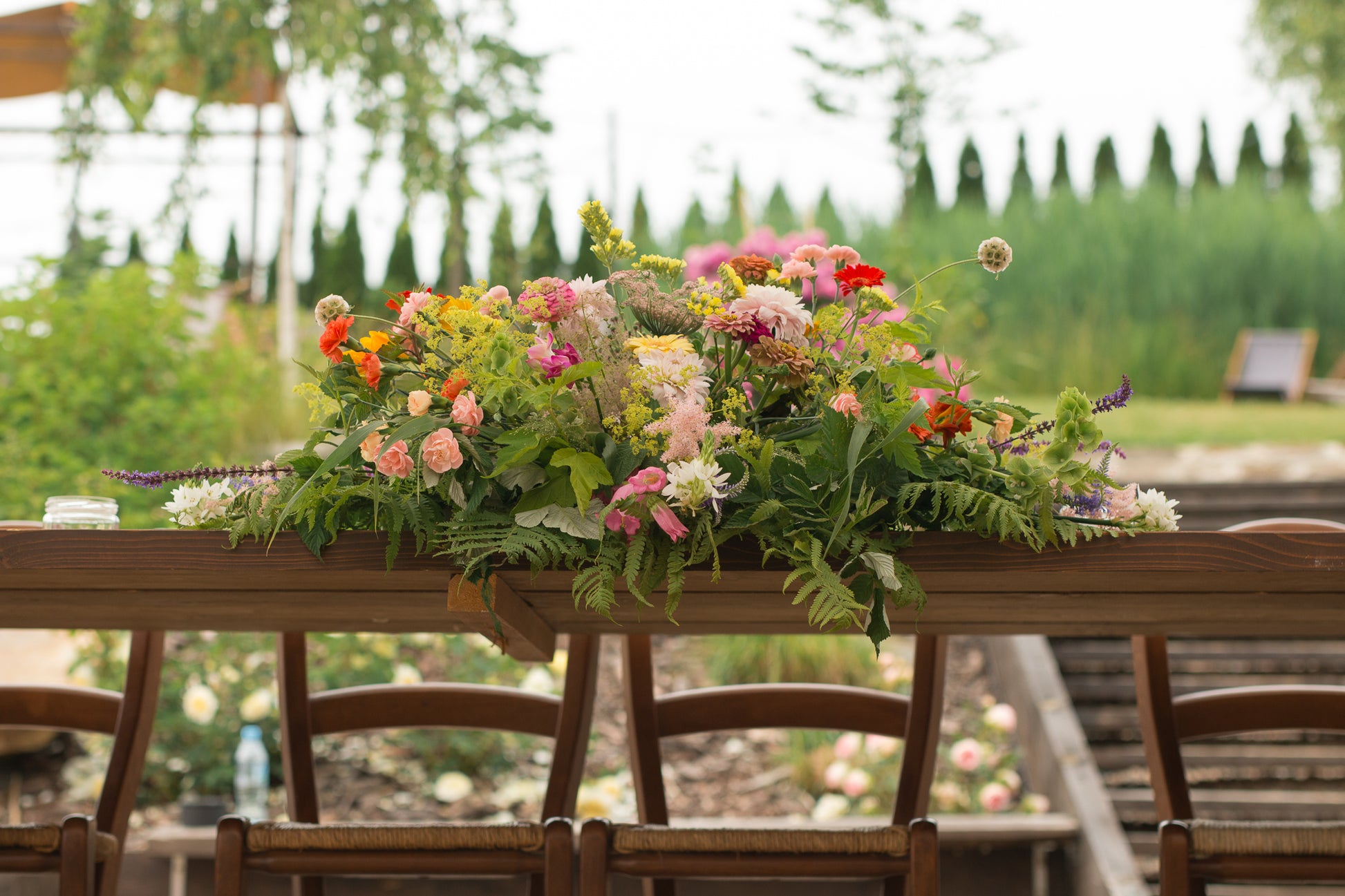 Naturalna i lekka kompozycja stworzona z sezonowych, ogrodowych i polnych kwiatów. Idealna jako dekoracja stołu Pary Młodej – dodaje romantycznego, naturalnego charakteru i pięknie wpisuje się w rustykalne lub boho uroczystości. Każda girlanda jest unikatowa i dopasowana do kolorystyki oraz stylu wesela.